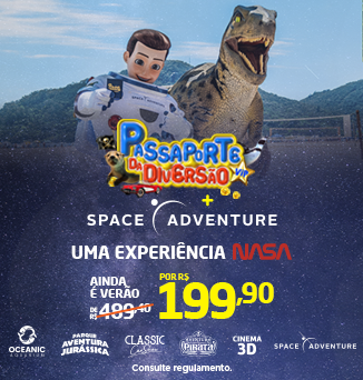 O Passaporte da Diversão é um combo promocional que reúne cinco atrações imperdíveis de Balneário Camboriú: Oceanic Aquarium, Parque Aventura Jurássica, Aventura Pirata, Classic Car Show e Cinema 3D (com opção de uso no Aquário ou no Classic Car Show). Com um único ingresso, você economiza mais de 50%, e tem até 12 meses para visitar cada atração no seu ritmo. Também é possível adquirir o Passaporte com Space Adventure incluso (o acesso ao Planetário não está incluído). A meia-entrada é válida apenas para ingressos avulsos.